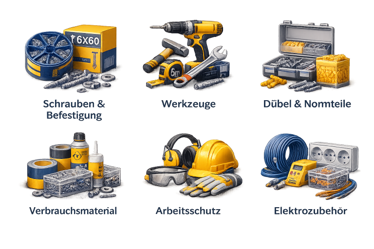 Ob Schrauben, Werkzeuge oder Verbrauchsmaterial: Du bekommst, was du brauchst – schnell, übersichtlich und unkompliziert.