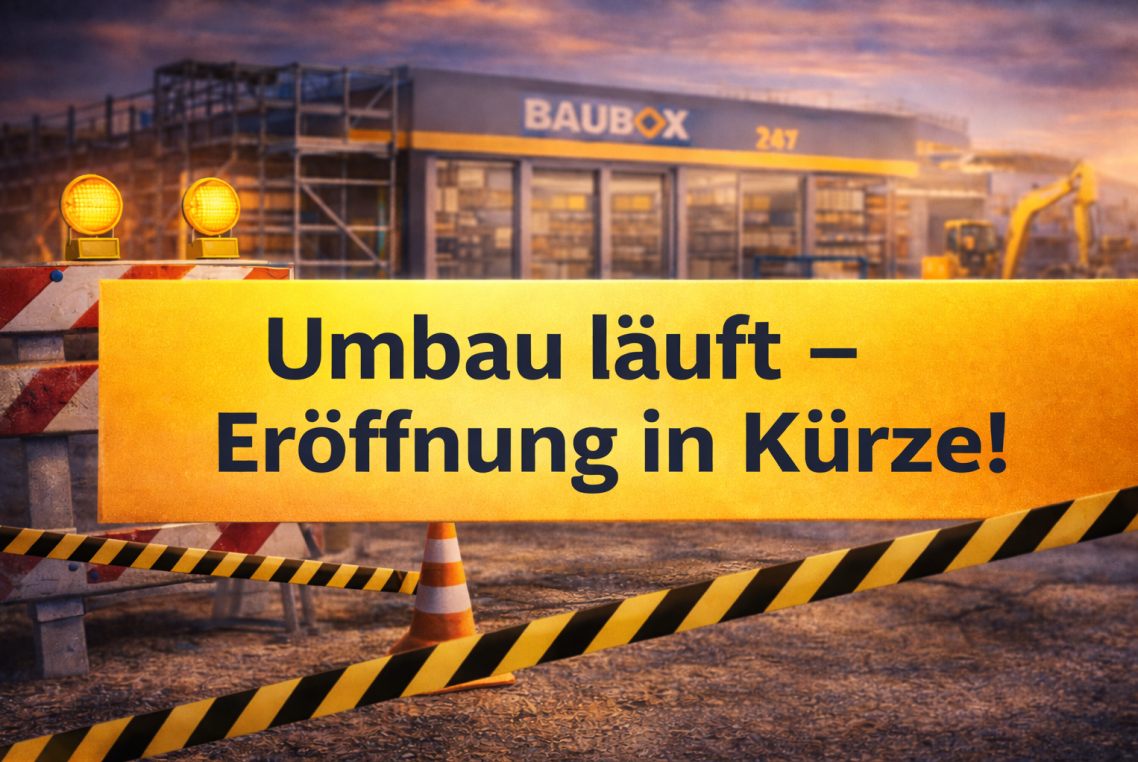 Im BAUBOX Onlineshop warten über 40.000 weitere Artikel auf dich – auswählen, bestellen und bereits am nächsten Werktag rund um die Uhr im Smartstore abholen.